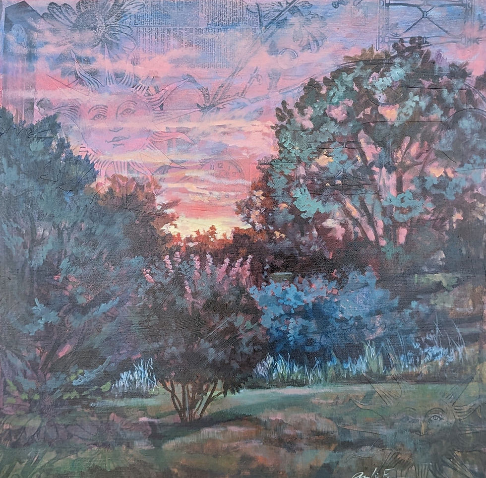 All my mixed media originals are created using layers of paper collage and layers of oil paint. Each piece shares a story that takes time to discover, like most good things in the world. Click on each piece to see the hidden collage background and learn more about the story.